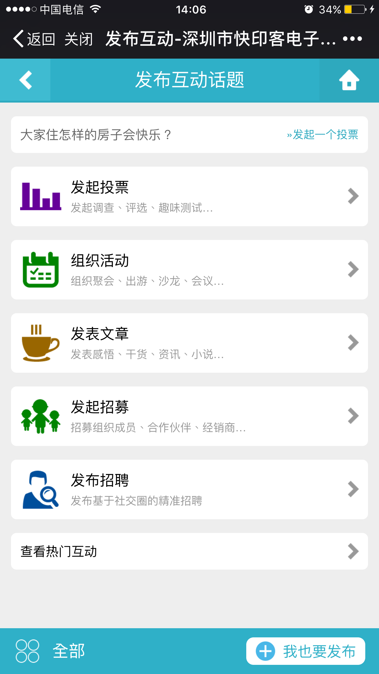 互动中心提供活动发布、传播、收款、报名统计、验票签到等全环节服务;发布者可便捷发布包括会展、会议、户外、聚会交友、亲子等各种线下活动;参与者可在海量活动中,精准发现感兴趣的活动,一键报名参与