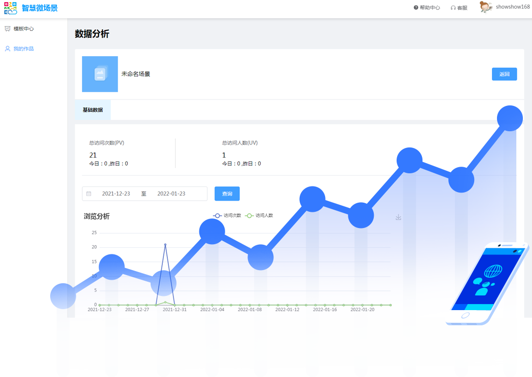 微场景又称为朋友圈PPT,是一种易于传播的H5页面,简单易用制作快,用户简单操作操作,无需自己写代码,就能够让用户一键创建出图文并茂、视频、音乐与动画交融的作品,快速分享到社交媒体开展营销,满足企业活动邀约、品牌宣传、引流吸粉、数据收集、电商促销、人才招聘等营销宣传需求,高效传播,目光吸引并获得瞬间的刺激,让品牌深入人心。