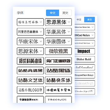 支持个性化自定义字体,字体库多样丰富(同时包含有中文、英文)