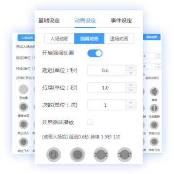入场动画、强调动画、退场动画多种模式,上面种动画效果