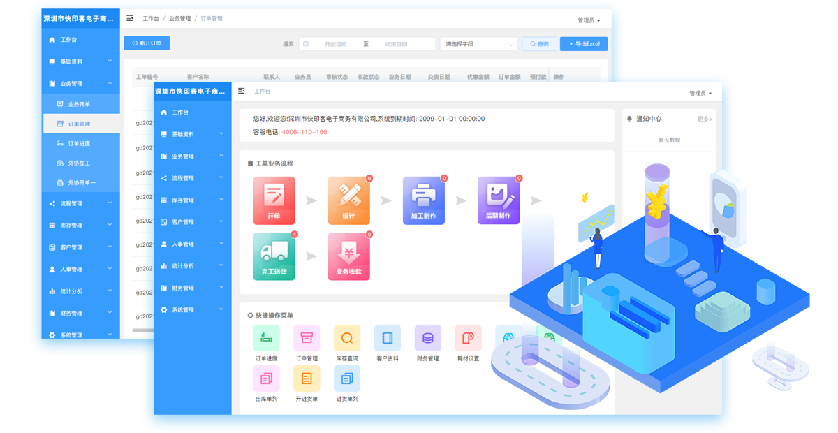 数字化管理平台普及版是综合了数千家广告、印刷企业的经验及业务而开发的管理系统,具有极简的操作体验,功能全面实用,界面简洁实用友好。突破传统,系统通过云端技术,直接将数据储存至云服务器,实现多门店、公司、家里等不限地域访问。数据集中化管理,云端备份不再丢失数据。工单、耗材、客户、员工、财务一体化管理,业务流程化杜绝漏单、丢单、漏收等传统手工开单模式常见状况,是您彻底改变传统混乱管理现状的利器。