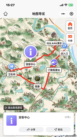 支持景区内多条游览线路规划,多景点打卡式游戏览线路,游览攻略更智能